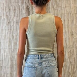 Women's small Hollister high-neck waffle tank in sage green.
