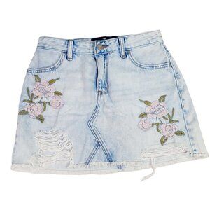Hollister High-Rise Skirt 100% Cotton Denim Mini Skirt Embroidered Boho 3 W26