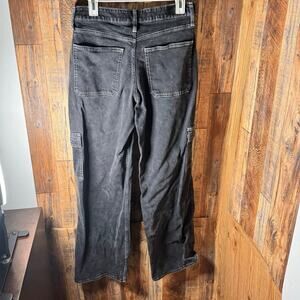 Stylish and functional Hollister high-rise vintage baggy jeans in a washed black color. Features multiple utility-style pockets, cargo side pockets, and stretch for comfort. Perfect blend of fashion and function.