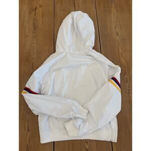 Hollister Hooded White Retro Stripe Pullover Lined Windbreaker 1/4 Zip Small