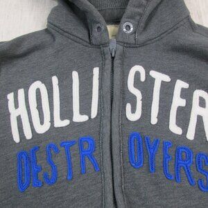 Hollister Hoodie Mens Large Gray Fleece Lined Embroidered Destroyer Full Zipper