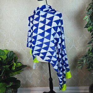Hollister Irregular Oblong Scarf Blue & white Triangle Print Lime Green Edging