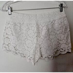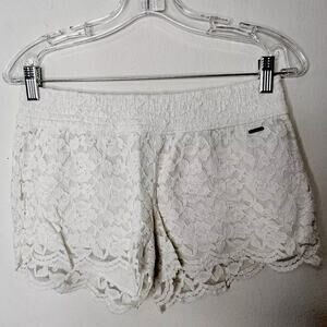 Hollister Ivory Summer Elastic Waist Floral Lace Short Shorts