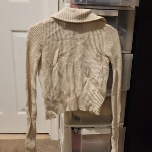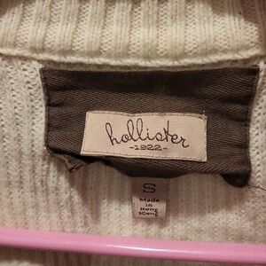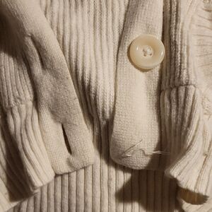 Soft ribbed knit cardigan from Hollister. Button-front styling for easy layering. Neutral ivory tone pairs with many outfits. Bottom button is missing (shown in pictures).