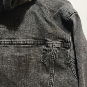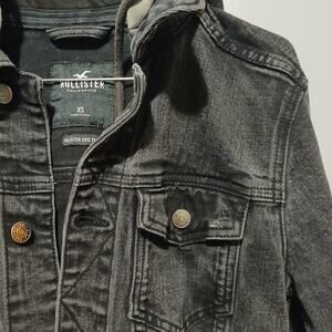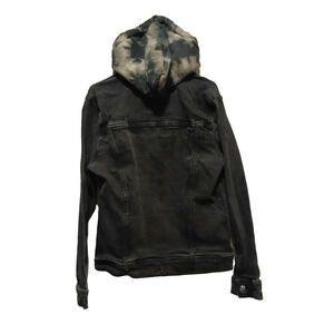 Hollister Jacket Women XS X-Small Black Denim Button Down Flex Hoodie Biker gray Camo