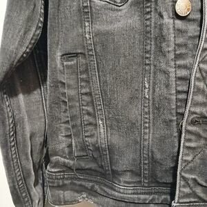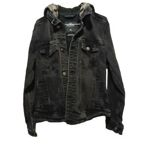 Hollister Jacket Women XS X-Small Black Denim Button Down Flex Hoodie Biker Camo