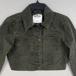 Hollister Jacket Womens Small Green Cropped Denim Snake Street 90s Y2K Coastal
