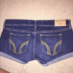 Hollister denim jean shorts in great condition! Washed with care and hung dry so they are not shrunk or destroyed from a dryer! The color is not faded at all!