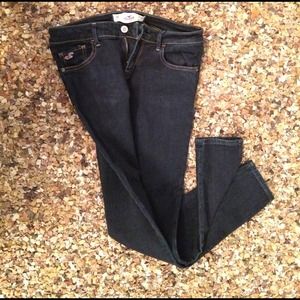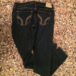 Dark blue shinny jeans with thick stitching on the back pockets. Five pockets , size 7R, 28 waist 31 length. Low rise. They are 99% Cotton and 2% Elastane. They're in pristine condition. 👖