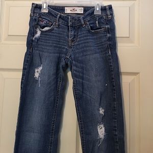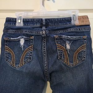 Dark wash Hollister Jeans that is a bit destructive • Straight Jeans but also fit like boyfriend jeans • stretch and are comfortable