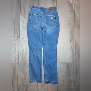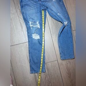Stylish and comfortable women's blue distressed jeans. Perfect for casual outings.