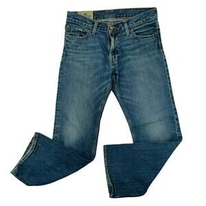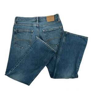 Hollister Jeans Men's Size 32x30 Straight Leg Medium Wash Whiskers Buttons Pocket Denim