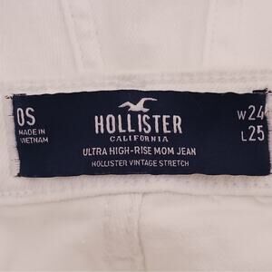 Get ready to rock these stylish Hollister white distressed ultra high rise mom jeans! These jeans are perfect for adding a trendy and comfortable touch to your wardrobe.
