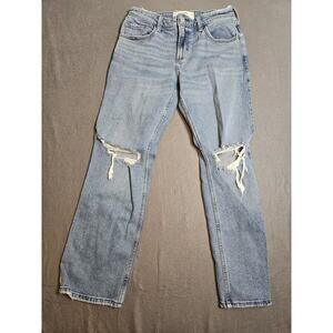 Hollister Jeans Womens 4R Blue Light Wash Low-rise Relaxed Straight Distressed