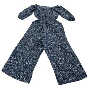 Hollister Jumpsuit Womens Medium Blue Floral Wide Leg Smocked Waist Pockets