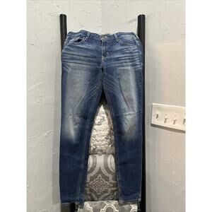 Elevate your denim game with these Hollister girls jeans in size 7. The medium wash and skinny style give them a trendy edge, while the 5-pocket design and low rise provide comfort and functionality. The jeans feature a zip and button closure, as well as accents like a zipper and Hollister logo.