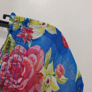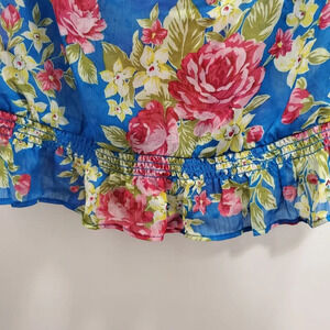 Hollister Junior's Blue Pink Floral Sheer Gauzy Keyhole Peasant Top Size XS
