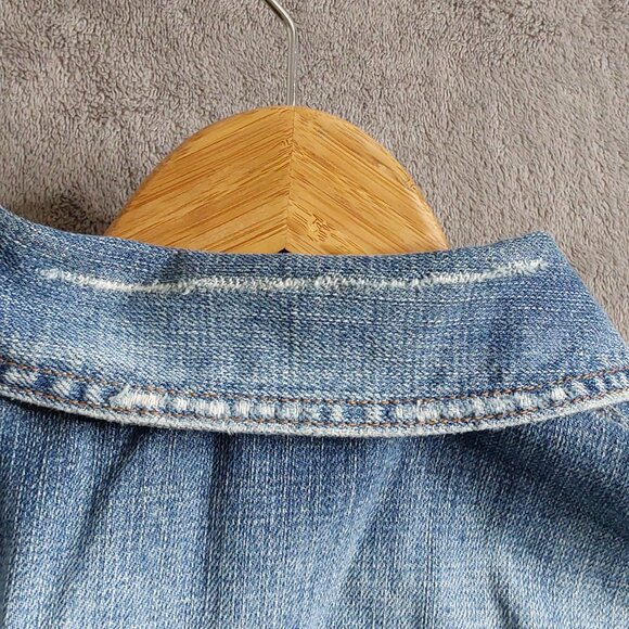 This Hollister denim jacket is a must-have layering piece! Made in a juniors size small, it features classic button-front styling, chest pockets, and a fun surprise — a pretty floral lining that adds a unique touch. The medium blue wash makes it versatile and easy to pair with dresses, skirts, or your favorite jeans.