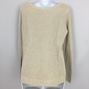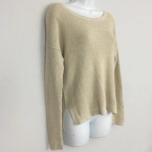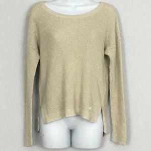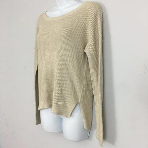 Hollister Juniors M Cream Thermal Knit Long Sleeve Cotton Blend Pullover Sweater