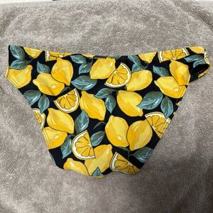 Hollister stylish bikini bottom with vibrant lemon print. Perfect for a sunny day at the beach. Women's size XS. Very cute!