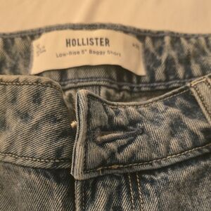 Light blue denim shorts with frayed hems. Classic and stylish.