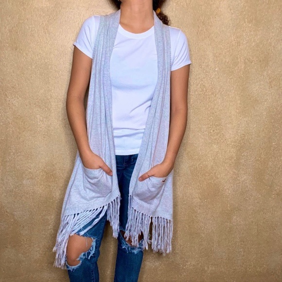 Hollister Light Blue Sleeveless Fringe Cardigan