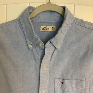 Elevate your casual wardrobe with this stylish light blue button-up shirt from Hollister. Crafted from soft, comfortable fabric, this shirt is perfect for any occasion. Its classic design features a button-down collar, single chest pocket, and adjustable cuffs for a tailored fit. - Suitable for any season Grab this must-have addition to your collection today!