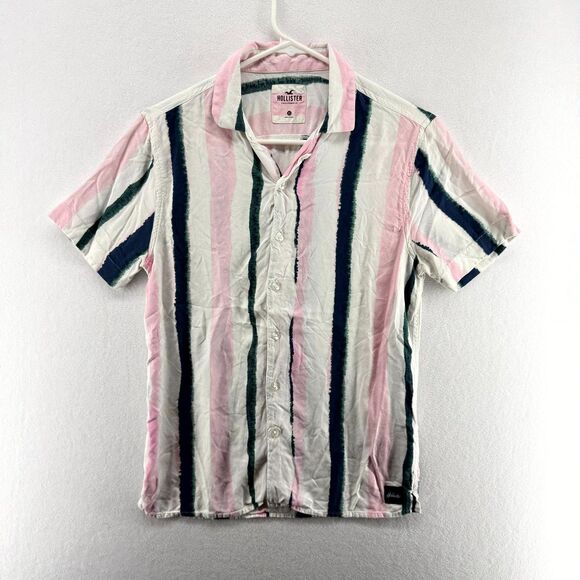Hollister Light Pink, White Short Sleeved Button Down Mens Size XS