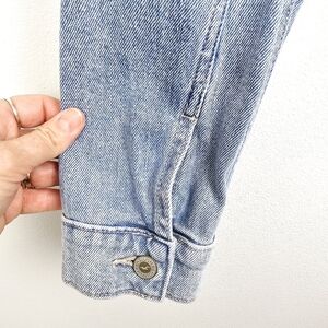 Hollister Light Wash Semi-Cropped Frayed Denim Jean Jacket with Pink Stitching