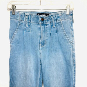 Hollister light wash Soft Stretch High-rise Flare jeans. In excellent condition! High rise. Button & zip front closure. Paperbag style waistline. Front & back pockets. Flare leg. 30” inseam. Light wash. Size 26.