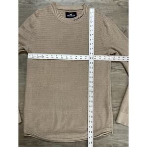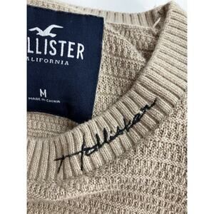 The Hollister Long Sleeve Knit Sweater in Men's Size M is a stylish and comfortable pullover sweater perfect for the winter, fall, and spring seasons. Made from a blend of nylon, viscose, and cotton, this beige sweater features a crew neck and regular fit, making it easy to wear and care for with its machine washable fabric. The Hollister logo accents add a subtle touch of branding to this classic and versatile sweater, ideal for a casual and fashionable look.