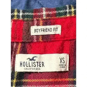 Hollister Long Sleeve Boyfriend Fit Flannel Red & Blue Size XS Button Down