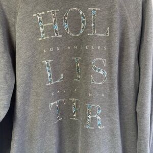 Hollister Long Sleeve Gray Floral Casual Comfy Crew Neck Sweater Large
