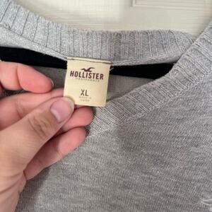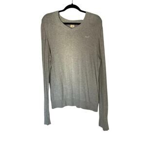 Hollister Long Sleeve V-Neck Sweater Size XL Light Grey Seagull Logo