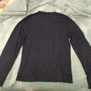 58% cotton, 42% polyester (half button down), navy blue, worn 2-3 times good condition.
