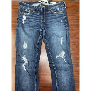 Hollister Low Rise Super Skinny Dark Wash Distressed Jeans Size 5 Short