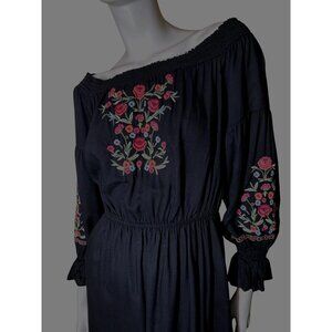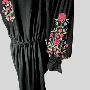 Hollister Medium Black Mini Dress With Floral Embroidery & Elastic Waist Bell Sl