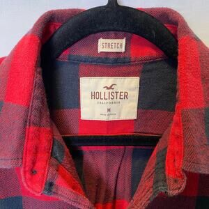 Hollister Men Buffalo Plaid Flannel Button Down Shirt Medium Long Sleeve Stretch