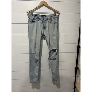 Hollister Men Skinny Ripped Jeans Size 30x32 Light Wash Blue Denim Epic Flex