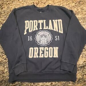 Hollister Men XL Relaxed Fit Portland Oregon Graphic Crewneck Long Sleeve Blue