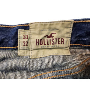 Hollister Mens 33 x 32 Balboa Classic Straight Button-Fly Dark Wash Denim Jeans