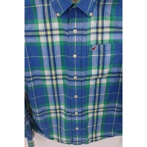Hollister Mens Blue White Green Striped Button up Shirt size small
