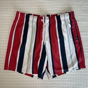 Hollister Men's Bold Striped Swim Trunks (w/ liner) - Red, White, and Blue