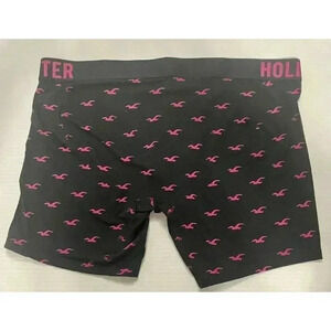 Hollister Men’s Boxer Long Brief Underwear Sz XXL NWOT Black W/Pink 6” Inseam