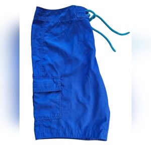 Hollister Men's California Board Shorts with Contrast Drawstring - Sz XL- Classic Hollister swim shorts in vibrant blue with contrasting turquoise drawstring. Features a convenient cargo pocket w/drain hole and signature seagull logo. Perfect for beach days, water sports and pool activities with quick-dry fabric and comfortable fit.