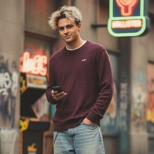 Hollister Men's Pullover Sweater Size Medium Burgundy Crew neck Long Sleeve