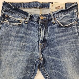 Hollister Men's Denim Blue Classic Straight Leg 5 pocket Whisker Jeans, sz 32x32