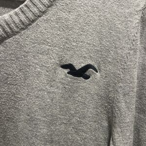 Hollister Men's Gray V-neck Sweater M Preppy Academia Urban Staple Neutral Logo