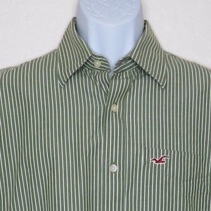 Hollister* Men's Long Sleeve Button Down Curved Hem Stripe Shirt~ Size Large