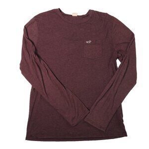 Hollister Men’s Long Sleeve Pocket Tee Med Burgundy Soft Casual Shirt Y2K